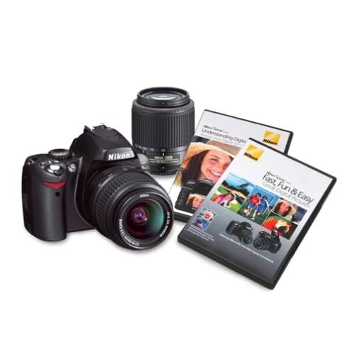 - Kit includes 18-55mm f3.5-5.6G ED II AF-S DX and 55-200mm f4.5-5.6G ED AF-S DX Zoom-Nikkor lenses, plus 2 Nikon School DVD